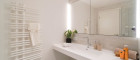 Offen geschnittene Grundrisse laden zur Geselligkeit ein, edle Naturholzböden mit langen Dielen verleihen dem Raum zusätzliche Großzügigkeit. Das Smart-Home System steuert das Zuhause auf Knopfdruck: Licht, Jalousie bis hin zur Heizung und Kühlung lassen sich hier koordinieren. Im Bad stehen gleich drei Ausstattungslinien mit unterschiedlichem Feinsteinzeug zur Auswahl: Der handgefertigte Charme von Marrazzis „Rice“, die unvergängliche Schönheit von Florims „Timeless“ Kollektion und die naturbelassene Anmutung der Serie „Pietre di Sardengna“ von Casalgrande Padana. Je nach Ausstattungslinie variieren auch Materialien und Farbe von Armatur, WC, Drückerplatte und Sprossenheizkörper.