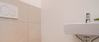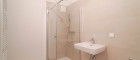 - Badezimmer mit Dusche, Waschbecken und Waschmaschinenanschluss