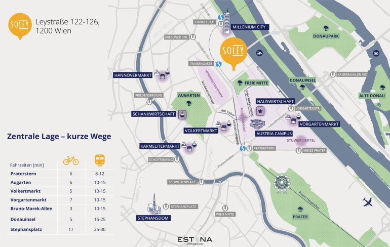 Zwischen Donaukanal, Augarten und Donauinsel, wo der kreative Spirit der Leopoldstadt sanft in die grüne Gelassenheit des 20. Bezirks übergeht, wartet ein Zuhause für Menschen mit Stil, Bewusstsein und Sinn für das Wesentliche: SOLEY.
