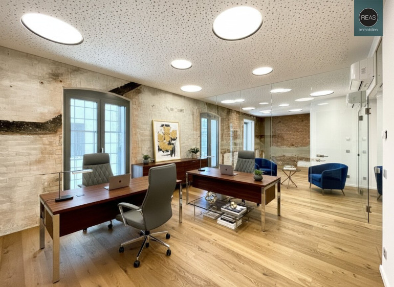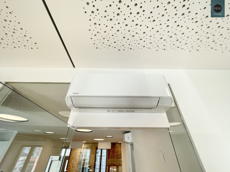 - 3 Räume, alle klimatisiert, mit eigenen Fenstern sowie mit hochwertigen Glastrennwänden und Glastüren versehen. 1 Großraum kann auch noch geteilt werden mittels nachträglichem Einbau einer Glaswand (bereits vorbereitet. noch zu besprechen)