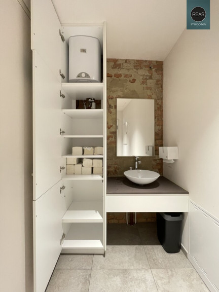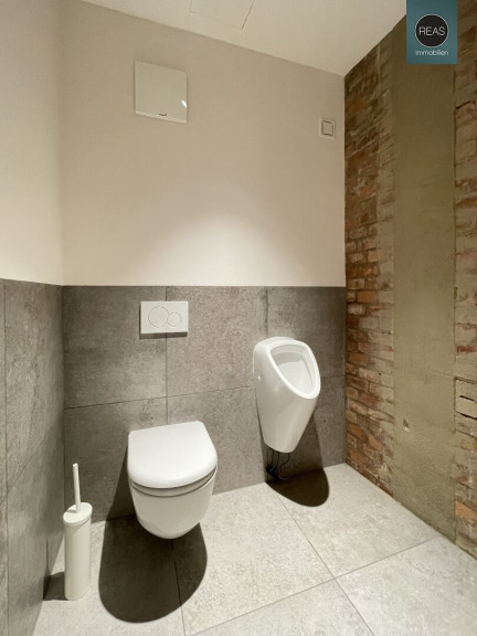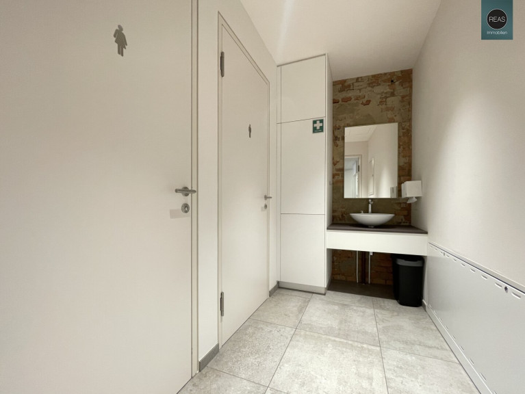 - 1 WC Bereich samt Waschraum mit Waschtisch und Einbauschrank, 1 WC sowie 1 WC mit WC & Pissoir