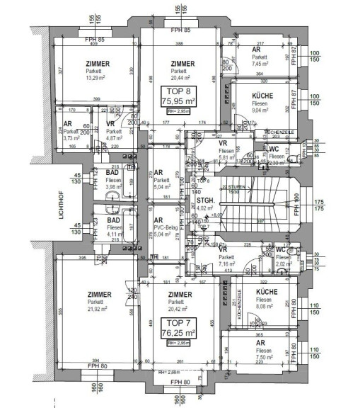 Bei der Zusammenlegung wird aus top7 und top8 eine wunderbare Familienresidenz - eine mögliche Raumaufteilung wäre wie folgt:
