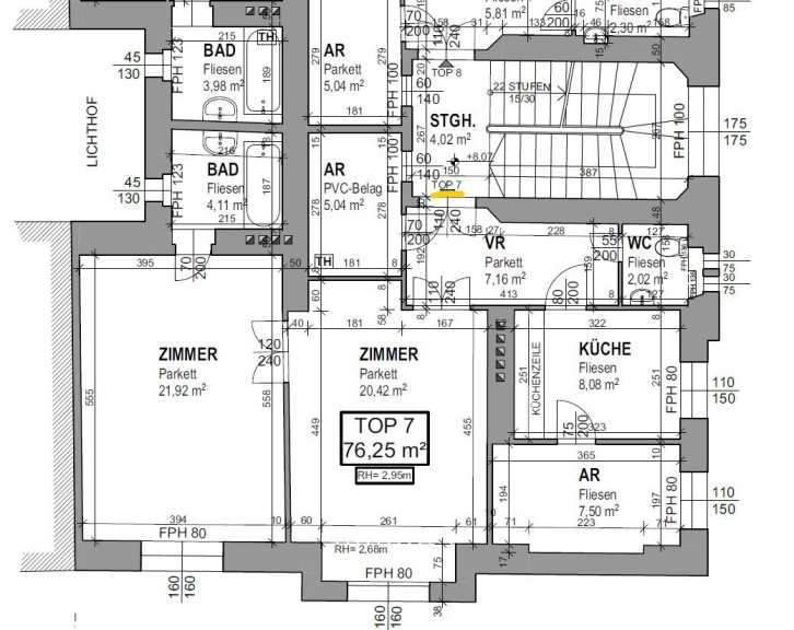 Eine Zusammenlegung mit der top8 ist möglich und ergäbe eine Wohnfläche ca. 153m².