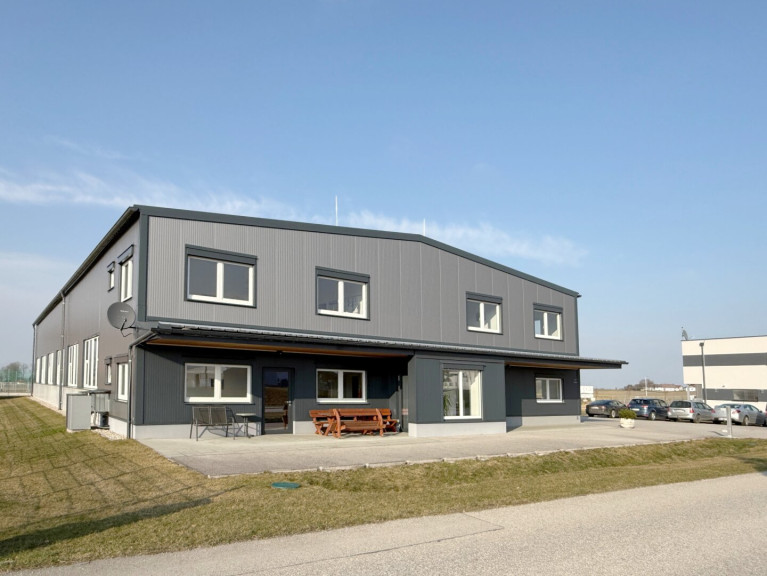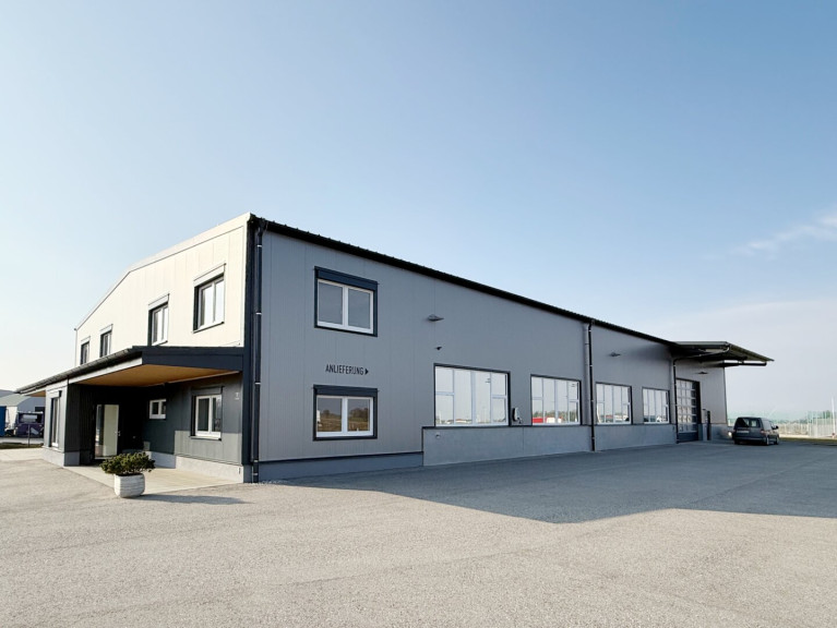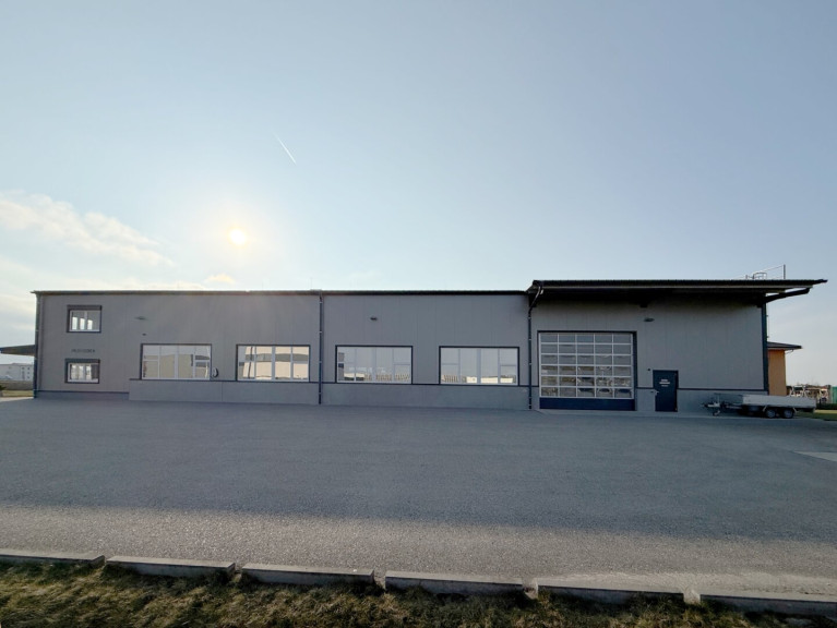 Dieses Betriebsgebäude wurde 2021 errichtet und besteht aus einer ca. 656 m² großen Halle, ca. 70 m² Büroräumen im 1. Obergeschoss und rund 147 m² Nebenflächen (Sanitär-, Sozial- und Technikräume, Archiv u.ä.)