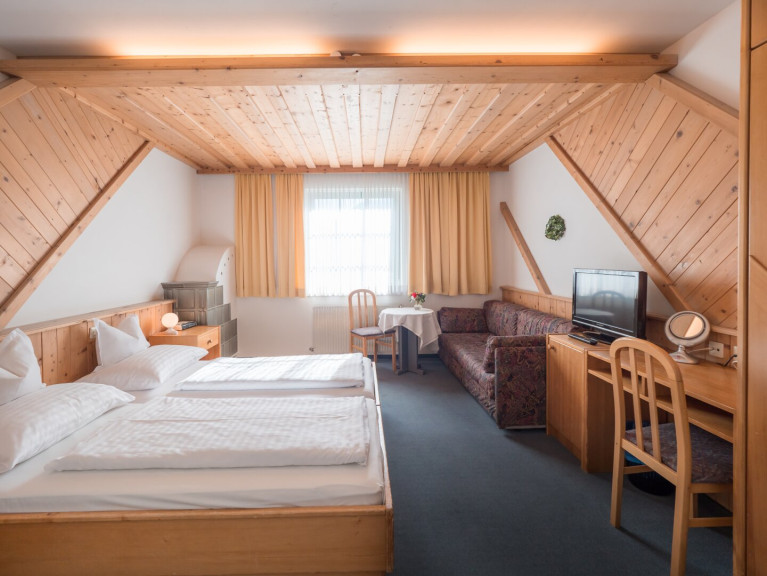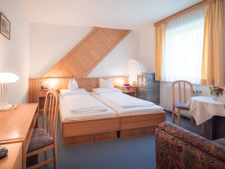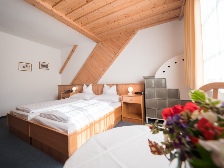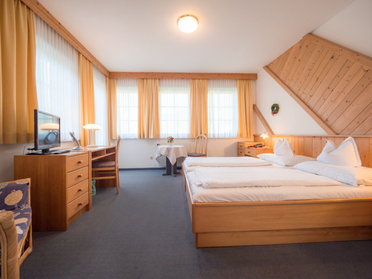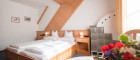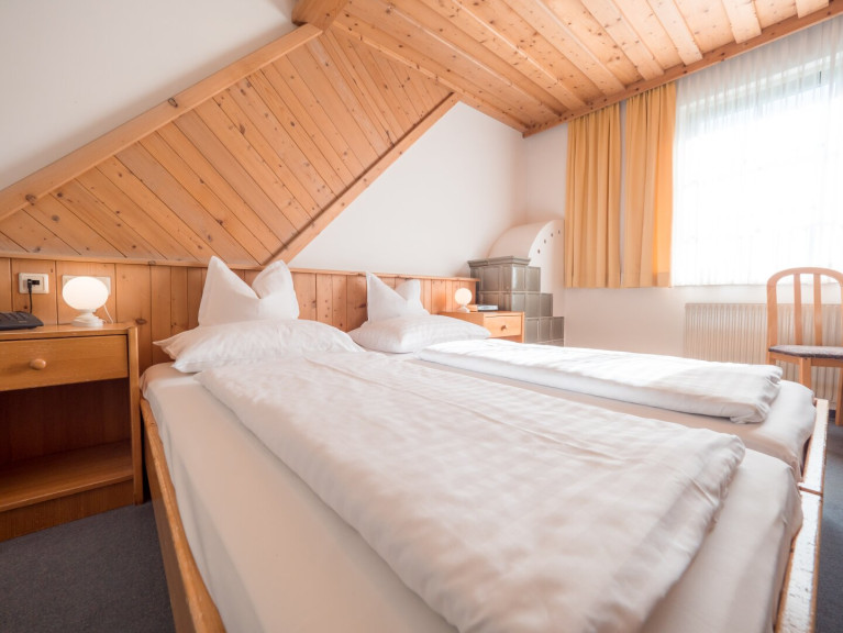 Die mit Holzmöbeln im Landhausstil eingerichteten Zimmer schaffen eine gemütliche Atmosphäre. Das ca. 300-400 Jahre alte, verarbeitete Holz vom Altbau verleiht den Räumlichkeiten einzigartigen Charme und behagliche Wärme. Jedes Zimmer verfügt über ein eigenes Bad mit Dusche oder Badewanne.