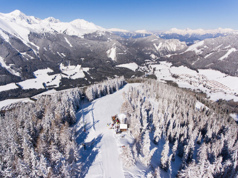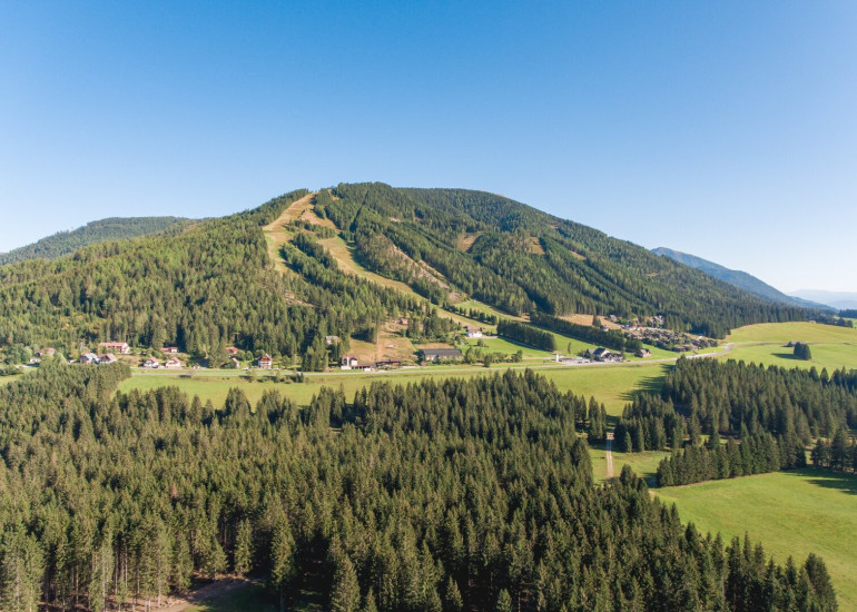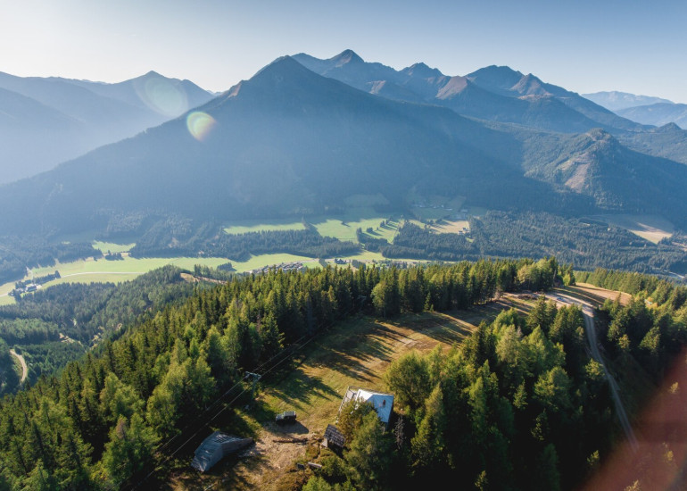 Die "Wichtelhütte"auf 1.800 m Höhe bietet eine große, sonnige Terrasse mit einem atemberaubenden Blick auf das Bösensteinpanorama (Bösenstein: höchster Gipfel des Murtals mit 2448 Metern) und ist ein beliebter Treffpunkt für Gäste und Einheimische.