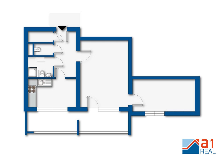 Vom Vorraum erreichen Sie das Badezimmer mit Dusche, das Wohnzimmer, den Abstellraum sowie die bereits eingerichtete Küche.