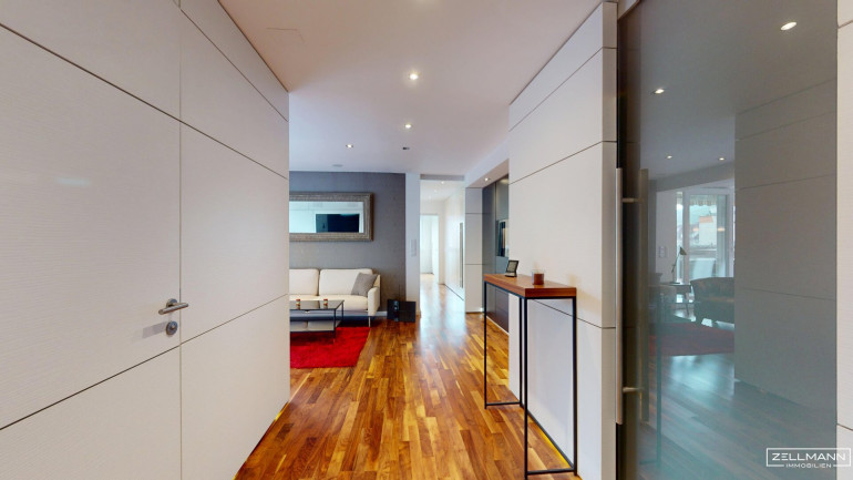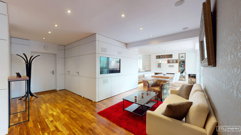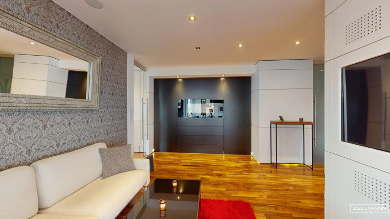Die Wohnung überzeugt durch eine hochwertige, moderne Innenausstattung und exklusive Schreiner-Maßanfertigungen, die perfekt auf das Raumkonzept abgestimmt sind. Die Ausstattung ist stilvoll, zeitlos und funktional zugleich.