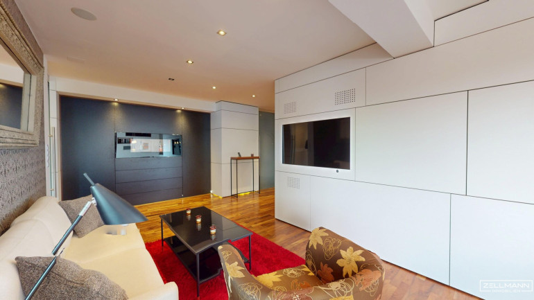 - hochwertige Einrichtung im Kaufpreis inkludiert (TV, Küche, Couch, Esstisch, Schreibtische, Einbauschränke, Bett)