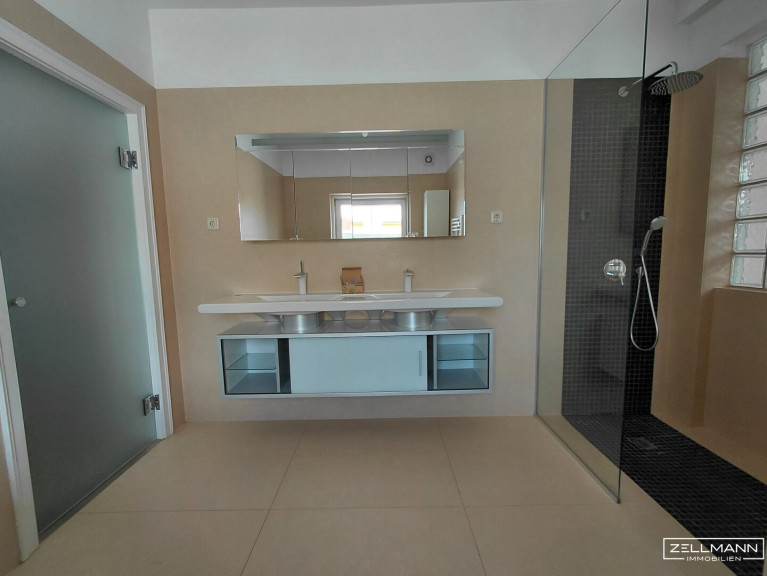 Das moderne Badezimmer überzeugt mit: