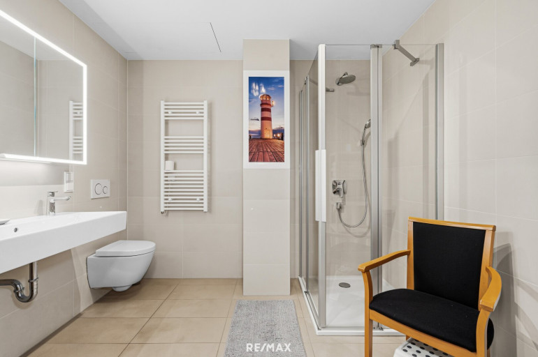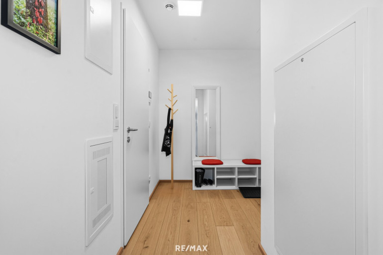 Das moderne Gebäude verfügt über einen Personenaufzug ( 3-fache Liftgruppe), der Sie bequem in die hohe Etage bringt. Ein gemeinschaftlicher Wasch- und Trockenraum sowie ein Fahrradabstellraum im EG steht Ihnen ebenfalls zur Verfügung. Ein Abstellraum auf der Wohnungsetage rundet das Angebot ab. Das Heiz- und Kühlsystem wird mit Flusswasser des Donaukanals betrieben und versorgt den ganzen Stadtteil ressourcenschonend. Ein Aussenpool am Dach steht zur gemeinschaftlichen Nutzung zur Verfügung.