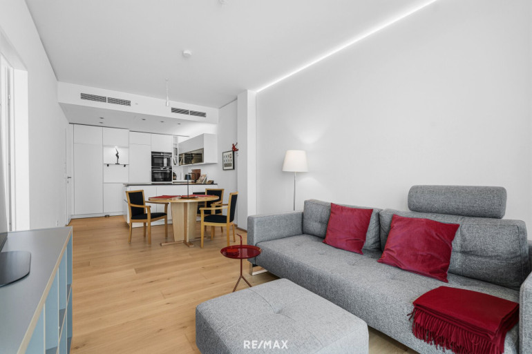 Die moderne 2-Zimmer-Wohnung besticht durch ein durchdachtes Raumkonzept mit einer offenen Wohnküche, die mit einer hochwertigen Einbauküche ausgestattet ist. Hier genießen Sie nicht nur kulinarische Highlights, sondern auch gesellige Stunden mit Familie und Freunden. Das edle Parkett und die behagliche Fußbodenheizung sorgen für ein gemütliches Ambiente und höchsten Komfort an kalten Tagen.