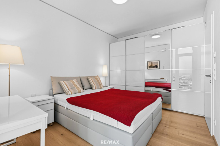 Diese exklusive Wohnung in der 28. Etage bietet Ihnen auf 52 m² Wohnfläche ein einzigartiges Wohnerlebnis mit atemberaubendem Ausblick über die Stadt, grüne Oasen und den Fernblick, der Sie jeden Tag aufs Neue begeistern wird.