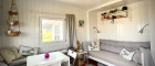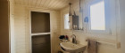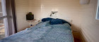 Anschließend an die Wohnküche finden Sie ein Schlafzimmer mit Doppelbett. Außerdem bietet das Häuschen ein zentral begehbares sowie geräumiges Badezimmer mit Waschtisch und Ablageflächen.
