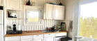 Im Haupthaus finden Sie die einladende Wohnküche mit großartigem Ausblick. Dieser Raum bietet einen Ruheplatz mit Sofas und eine voll ausgestattete Einbauküche - mit Geschirrspüler, Kühlschrank und einer Kochplatte (mit Gas).