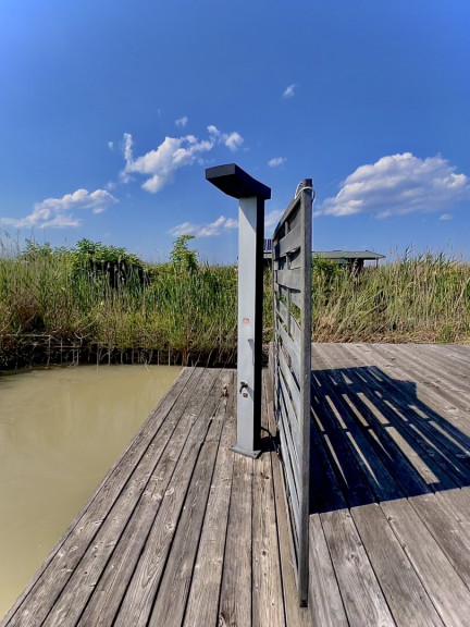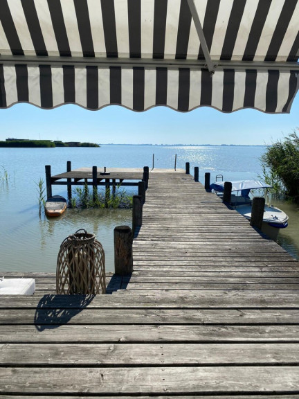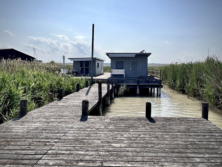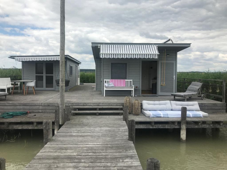 Das entzückende Feriendomizil, das auf zwei Häuschen aufgeteilt ist, liegt – abseits vom Touristentrubel – sehr ruhig am offenen See in Richtung Mörbisch und ist vom Ruster Hafen - da sie gleich in der Nähe des langen Kanals liegt - in einer ca. 15-20-minütigen Bootsfahrt erreichbar. Durch die Ost-Ausrichtung und die großen Glastüren bietet dieser Platz einen phantastischen Ausblick auf den offenen See!
