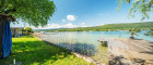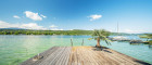 Das Grundstück verfügt über einen rund 30 Meter langen Uferabschnitt mit eigenem Badesteg und bietet damit direkten Zugang zum kristallklaren Wasser. Der großzügige Liegebereich von rund 230 m² lädt zum Sonnenbaden und Entspannen ein und ermöglicht ungestörte Badefreuden in absoluter Privatsphäre.