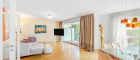 Erdgeschoss: Großzügiger Wohn- und Essbereich mit hochwertiger Küche und erstklassigen Geräten von Miele. Außerdem befindet sich auf dieser Ebene ein Gästezimmer mit eigenem Badezimmer.