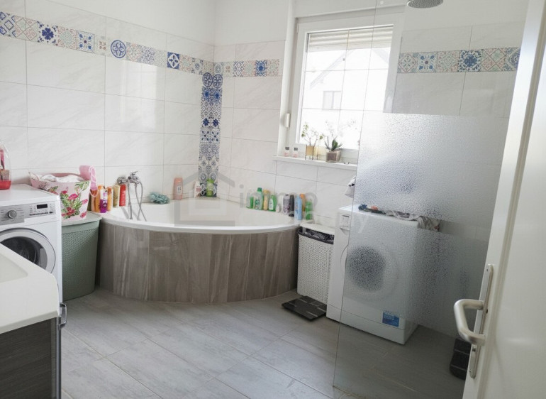 Weiters stehen Ihnen im Erdgeschoss ein ca. 13,5 m² großes Zimmer, welches momentan als Schlafzimmer genützt wird, ein WC und ein großzügiges Badezimmer mit Eckbadewanne und separater Dusche, zur Verfügung. Vom Erdgeschoss können Sie direkt in Ihre Garage gehen und bringen so Ihre Einkäufe bei jedem Wetter unbeschadet ins Haus.