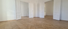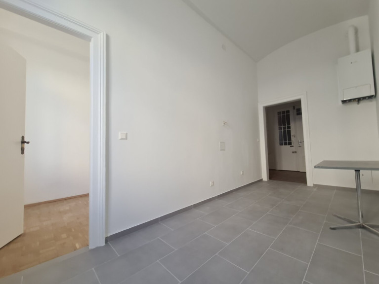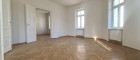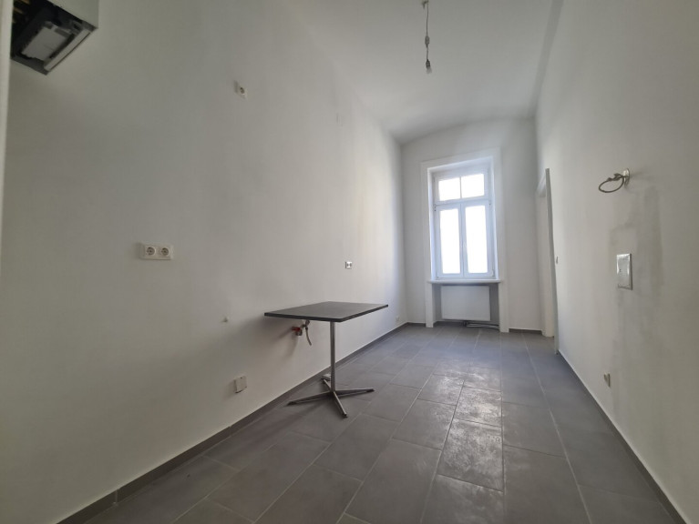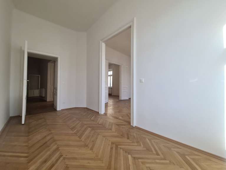 großzügiger Vorraum, 4 Zimmer ( 2 große Zimmer, 1 kleines Zimmer, 1 Kabinett), große Küche unmöbliert (Vermieter stellt Spüle und Kochgelegenheit zur Verfügung)