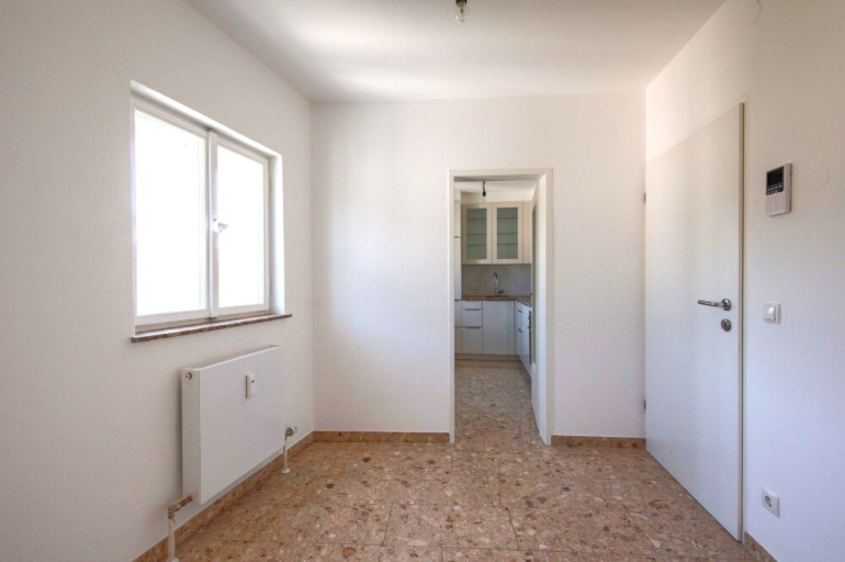 Praktisch an der Großraumwohnung ist, dass die Küche durch den Vorraum gänzlich vom Wohn- Schlafraum getrennt ist. Ebenso sind das Bad mit Badewanne und das WC voneinander getrennt - auch praktisch. Und einen begehbaren Kleiderschrank bzw. Stauraum gibt es auch noch.
