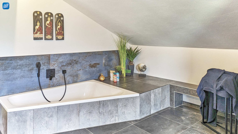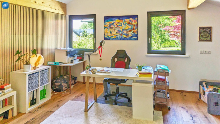 Auf ca. 180 m² Wohnfläche überzeugt das Haus mit offenem, lichtdurchflutetem Wohn-, Ess- und Küchenbereich samt hochwertiger Breitschopf-Küche (Siemens & Bora), vorbereitetem Kaminanschluss sowie direktem Zugang zur großzügigen Terrasse mit Tropenholzbelag und Whirlpool. Der rund 200 m² große, pflegeleichte Garten mit Granitsteinmauern und Gartenhaus bietet Privatsphäre und herrlichen Bergblick.
