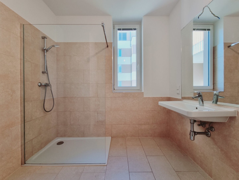 Fliesen, Parkett, Fernwärme, Fußbodenheizung, Zentralheizung, Wohnküche / offene Küche, Personenaufzug, Bad mit Fenster, Dusche, Kabel/Satelliten-TV