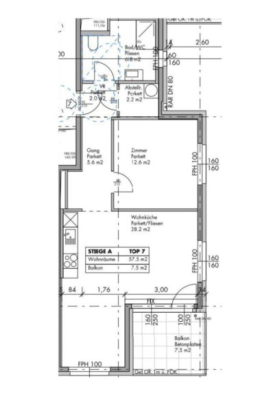 57,39 m² Wohnfläche + 7,50 m² Balkon