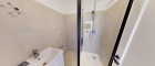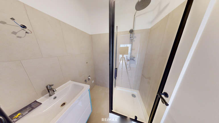 - das Bad mit Dusche und Waschmaschinenanschluss