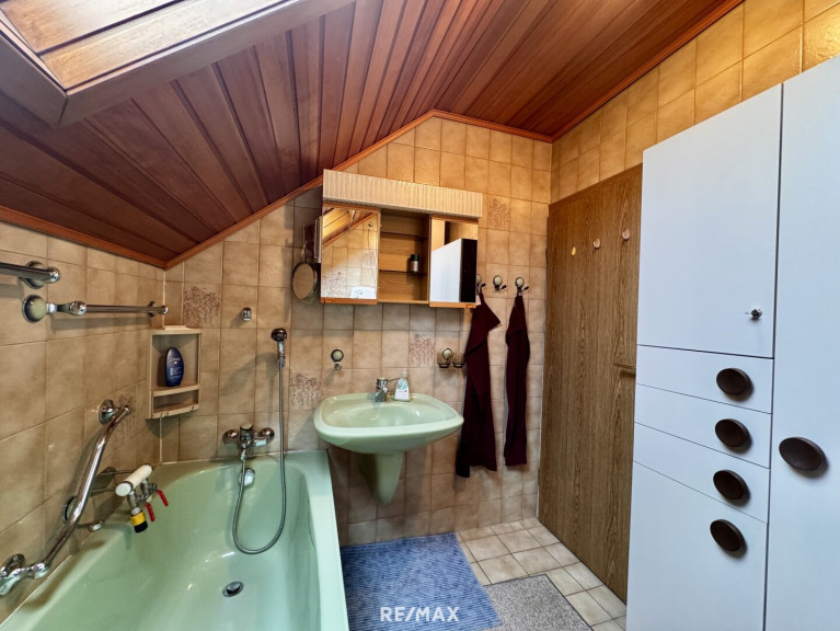 Im Erdgeschoss befindet sich ein großzügiger Wohnbereich mit Küche, drei weiteren Zimmern sowie ein Badezimmer mit Dusche. Das Obergeschoß umfasst vier Zimmer wobei zwei davon als Durchgangszimmer angelegt sind, sowie ein Badezimmer mit Badewanne. Die Wohnräume bieten ausreichend Platz, um mit einer Renovierung ein gemütliches Zuhause nach eigenen Vorstellungen zu schaffen.