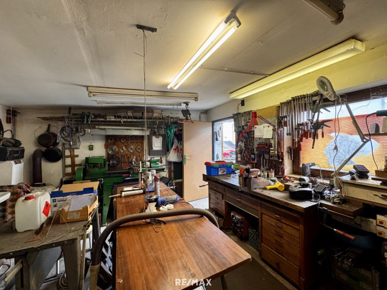Weiters befindet sich am Grundstück eine Garage, ein KFZ Abstellplatz, Abstellräume sowie eine eingerichtete Werkstatt. Dadurch eignet sich die Liegenschaft besonders gut für Personen, die gerne selbst Hand anlegen oder Platz für handwerkliche Tätigkeiten benötigen.