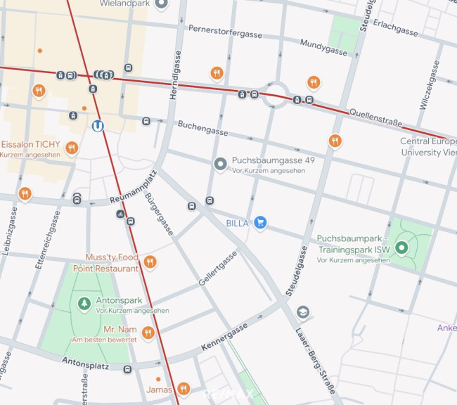 Die U-Bahn-Station Reumannplatz (U1) ist in etwa 3–4 Gehminuten erreichbar und ermöglicht eine rasche Verbindung in die Wiener Innenstadt sowie zu weiteren wichtigen Knotenpunkten der Stadt.