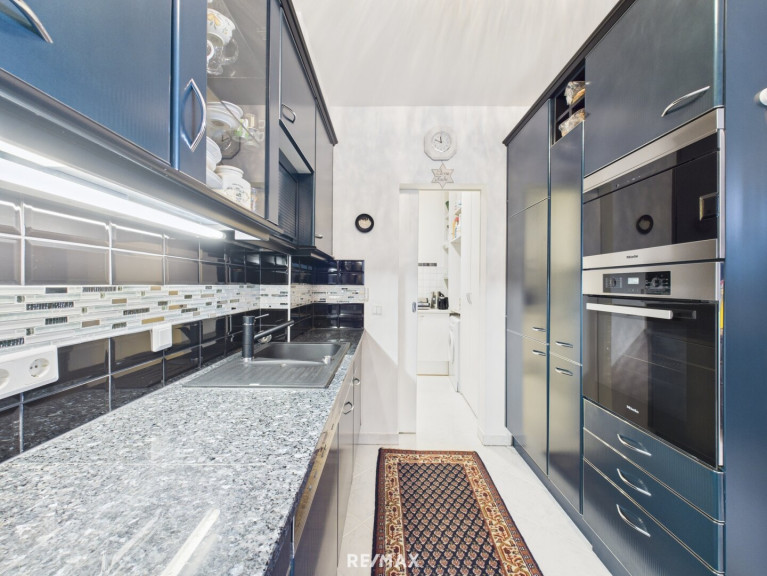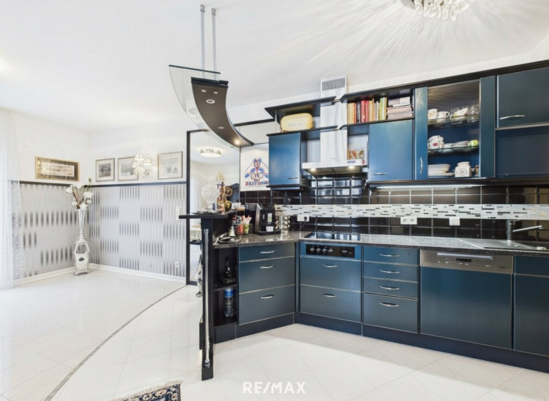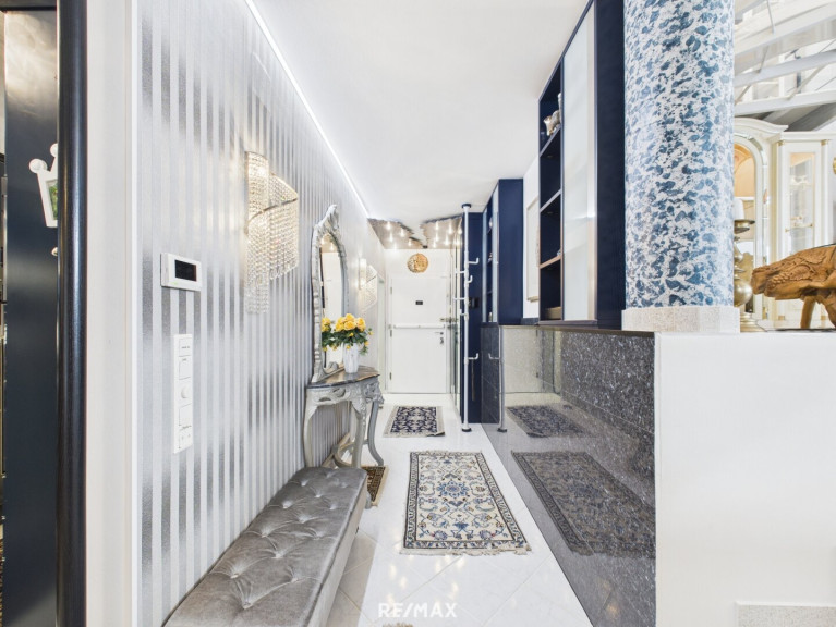 Die Penthouse-Maisonette-Wohnung beeindruckt durch luxuriöses Interieur, das nach Absprache teilweise übernommen werden kann. Die beiden Schlafzimmer verfügen jeweils über begehbare Kleiderschränke und bieten dadurch zusätzlichen Wohnkomfort. Das Schlafzimmermobiliar wird vor Übergabe geräumt. Der offene Wohn-/Essbereich mit hochwertiger Küche und separater Nebenküche vermittelt ein einzigartiges Wohnambiente. Dampfgarer, Geschirrspüler sowie Backrohr sind in einem neuwertigen Zustand.