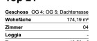 Wohnfläche: ca. 174,19 m² + Terrassen: ca. 48,56 m² + Dachterrasse: ca. 72,44 m² + Kellerabteil