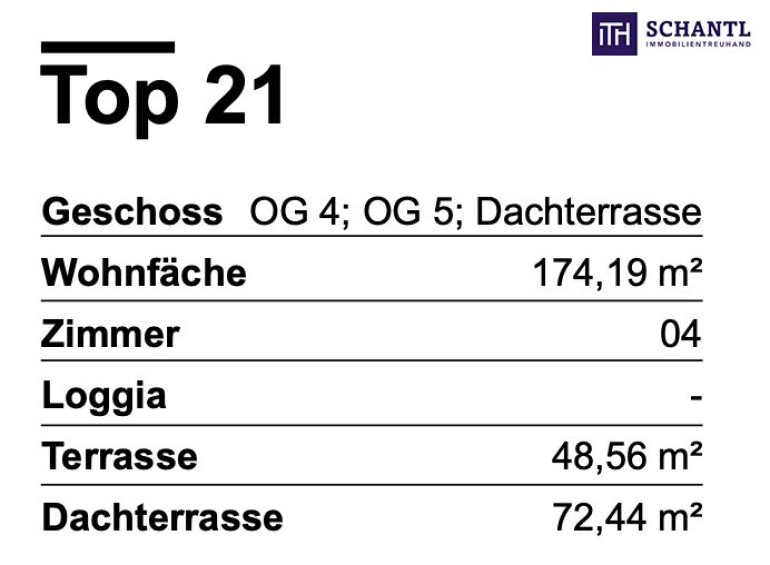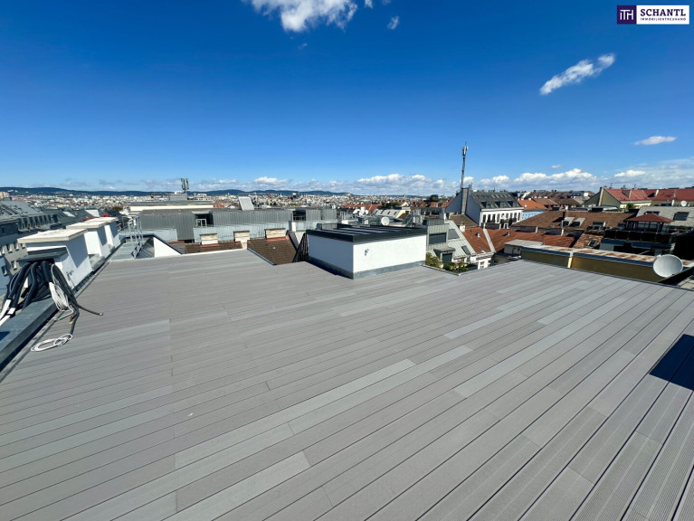 Wenn Sie nach unten schauen, liegt Ihnen die Stadt zu Füßen. Kopf hoch, und der Himmel über Wien ist zum Greifen nah. Genau so und nicht anders präsentiert sich dieses wunderbar angelegte Dachgeschoss mit all seinen Terrassen. In die Wohnung gelangen Sie direkt über den Lift, wir nennen das Ihre persönliche Wohnungsfahrt. Es erwarten Sie zwei Vorräume mit ausreichend Platz für die Garderobe, ein praktischer Abstellraum, drei Schlafzimmer mit jeweils integriertem Badezimmer, ein separates Gäste-WC, sowie der lichtdurchflutete, ca. 74 m² große Wohn-Essbereich, mit Kochgelegenheit und Ausgang zur 37 m² großen Terrasse auf der Wohnebene und Blick in den ruhigen, grünen Innenhof. Von hier aus gelangen Sie auf die magisch schöne Dachterrasse mit ca. 72,5 m² und dem gigantischen Blick über Wien. Auf der Dachterrasse ist alles vorbereitet für Whirlpool, Sauna und Outdoorküche. Speziell der Ausblick ist ein wahrhaftes Privileg und wird Sie rundum begeistern.