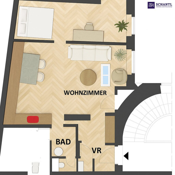 - einladendes Vorzimmer mit Zugang zur Wohnküche, Badezimmer und WC