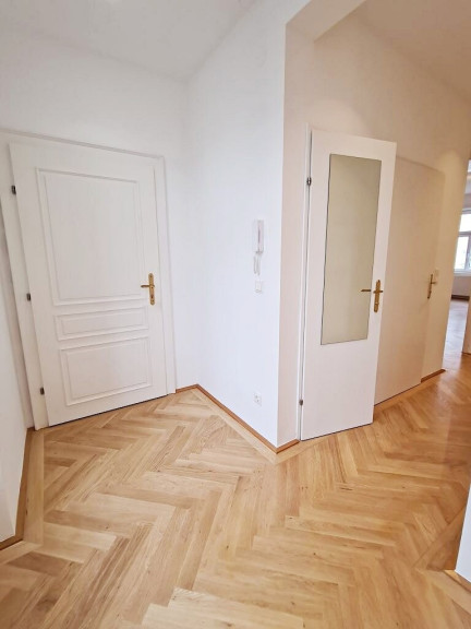 Vorzimmer, 3 getrennt begehbare Zimmer (WG-tauglich), Küche, Badezimmer, WC, Abstellraum am Gang, Kellerabteil