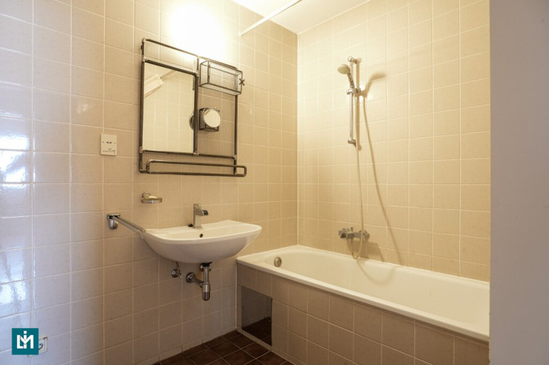 - Badezimmer mit Wanne und Waschmaschinenanschluss