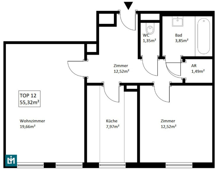 Die 2 - Zimmer Wohnung gliedert sich wie folgt: