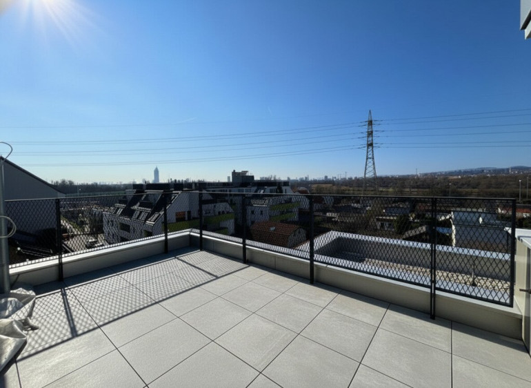 ERSTBEZUG | Außenflächen mit direktem Blick auf den Kahlenberg | vollausgestattete Küchen | Fußbodenheizung und Fußbodenkühlung