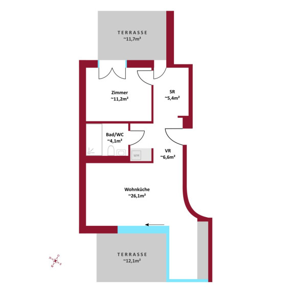 - Vorraum: ca. 6,55 m²