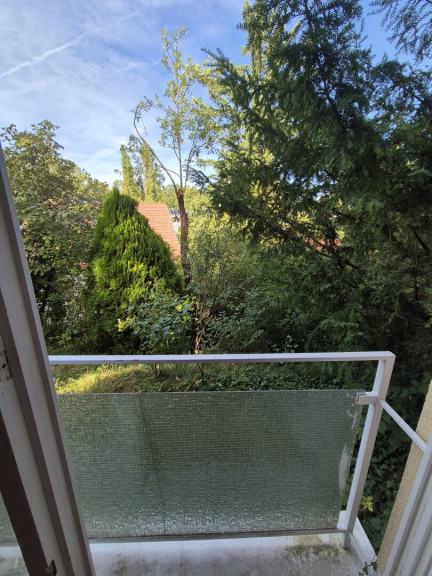 Die Wohnung befindet sich im untersten Geschoss in einem 1960er Jahre Gebäude in Hanglage in der Nähe des Lainzer Tiergartens, das Gebäude befindet sich in einer ruhigen Sackgasse nahe des Lainzer Tiergartens.