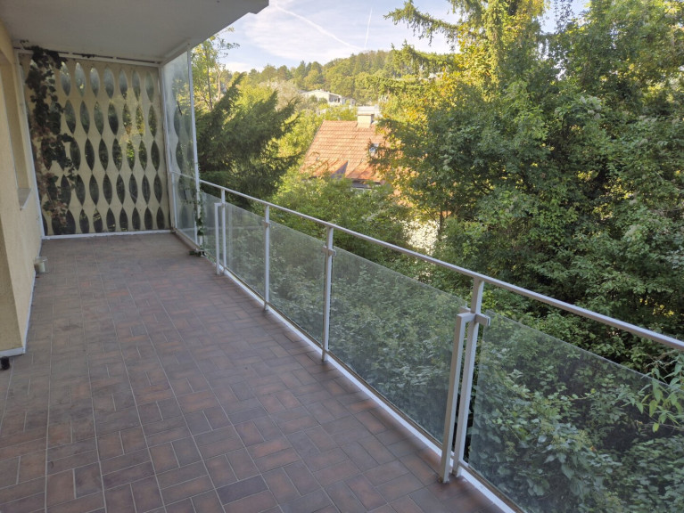 Die Balkonwohnung befindet sich im unteren Geschoss eines 1960er Jahre Gebäudes in Hanglage in der Nähe des Lainzer Tiergartens, das Gebäude verfügt über eine sehr gepflegte Gartenanlage und befindet sich in einer ruhigen Sackgasse.
