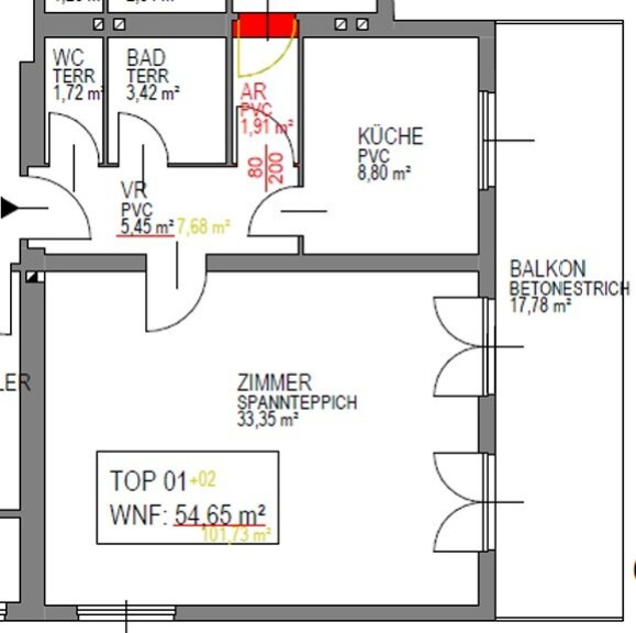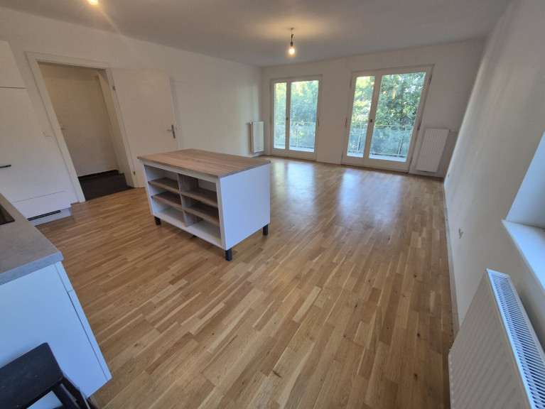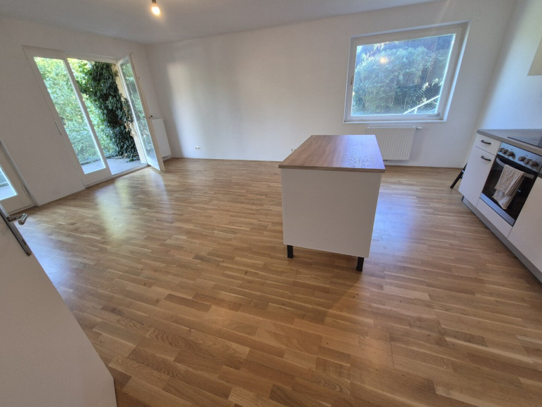 Die im Grundriss eingezeichnete Küche ist in Natura das Schlafzimmer, im Wohnbereich wurde eine Küche verbaut, somit ergibt sich eine smarte Raumaufteilung. Ein Kellerabteil ist der Wohnung zugeordnet.