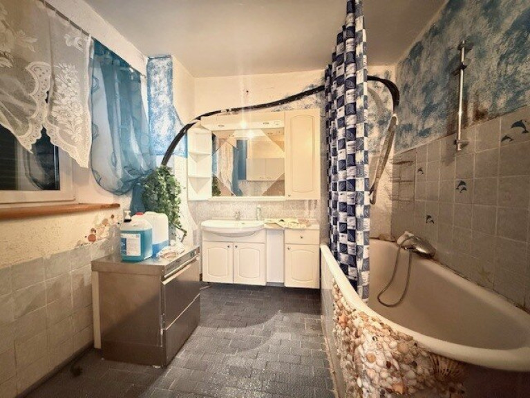 Das Gebäude befindet sich in einem renovierungsbedürftigen Zustand, bietet jedoch eine solide Basis für die Verwirklichung eigener Wohnideen.