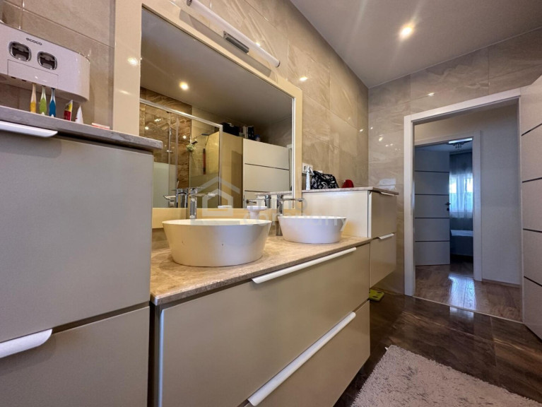 Das Haus besticht durch seine moderne Ausstattung und durchdachte Raumaufteilung. Zwei Badezimmer mit Fenster und Badewanne sowie zwei separate WCs sorgen für höchsten Wohnkomfort. Die Fußbodenheizung in Kombination mit einer effizienten Gas-Zentralheizung garantiert behagliche Wärme in allen Räumen. Stilvolle Fliesen und hochwertiges Laminat schaffen eine angenehme Atmosphäre. Die voll ausgestattete Einbauküche lädt zum gemeinsamen Kochen und Verweilen ein.
