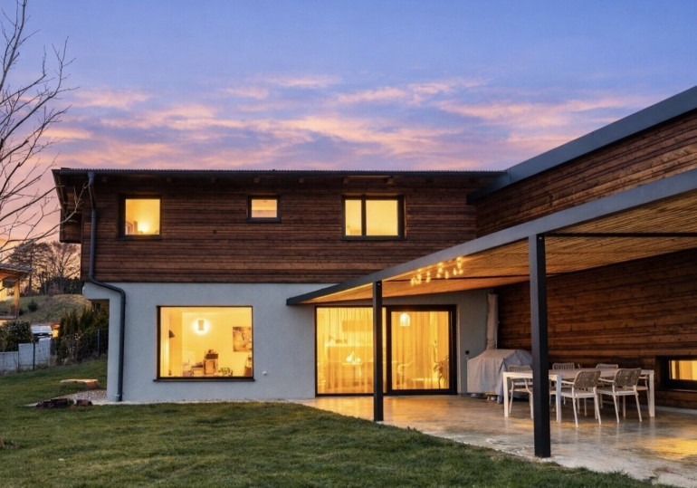 Dieses außergewöhnliche Zuhause aus dem Jahr 2023 verbindet nachhaltige Bauweise, hochwertige Materialien und eine Architektur, die Ruhe, Licht und Raum spürbar macht.
