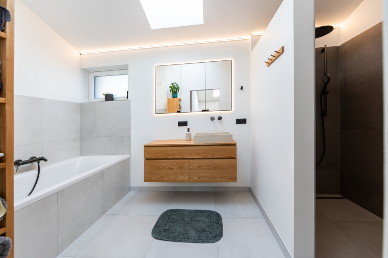 Zwei stilvolle Bäder, hochwertige Armaturen, klare Linien