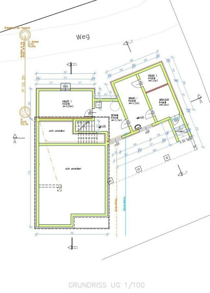 Ca. 60 m² Keller, gefliest, in mehrere Räume gegliedert