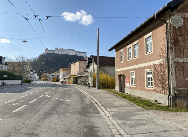Die einzigartige Lage des Grundstückes direkt an der Nonntaler Hauptstraße zeichnet sich durch eine hervorragende Infrastruktur und ausgezeichnete Anbindung an das öffentliche Verkehrsnetz aus.